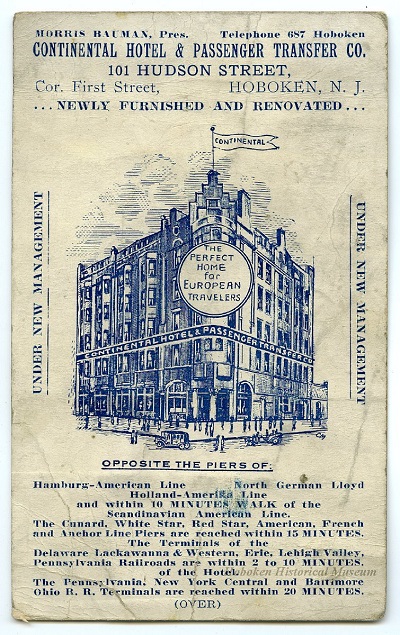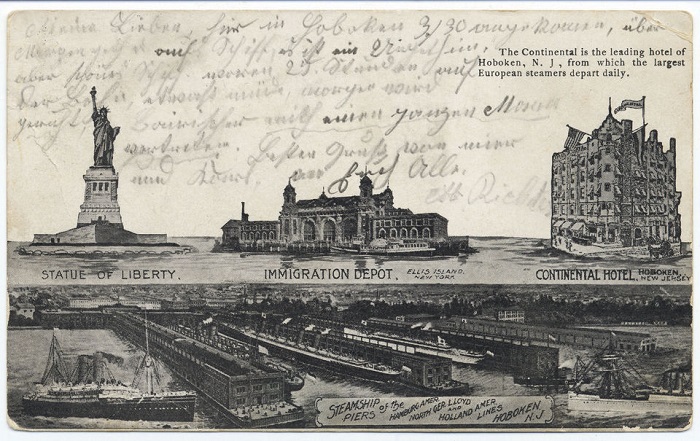 霍博肯、艾利斯島和自由女神象徵了入境美國的標誌。圖片來源:Hoboken Historical Museum